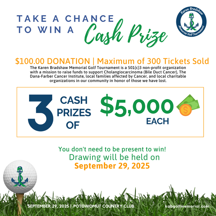 $100 each ONLY 300 tickets will be sold. THREE CASH PRIZES of $5,000 EACH